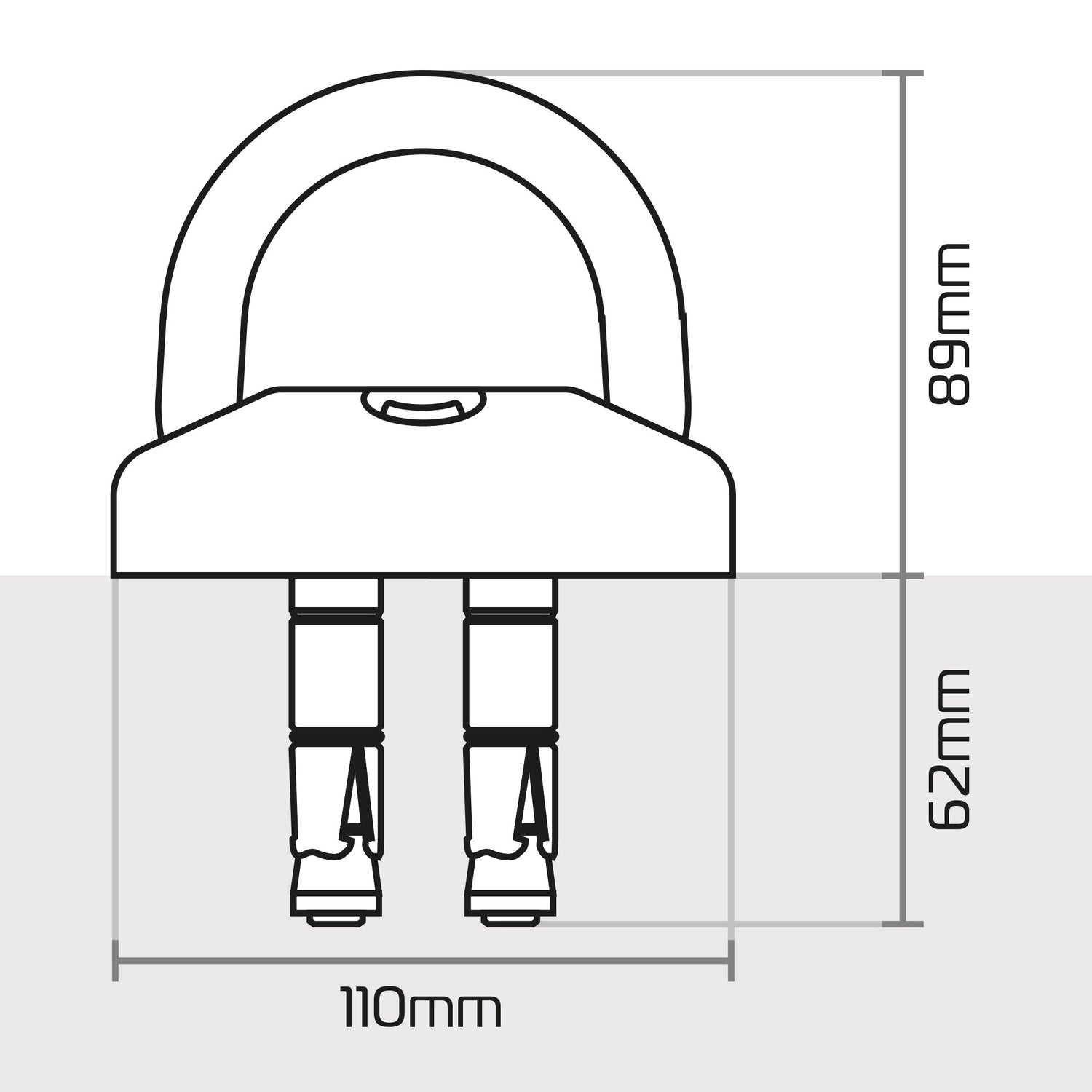 When used as a ground anchor, it is ideal for high traffic areas, as it can be ridden/driven over when the shackle is laid flat.
