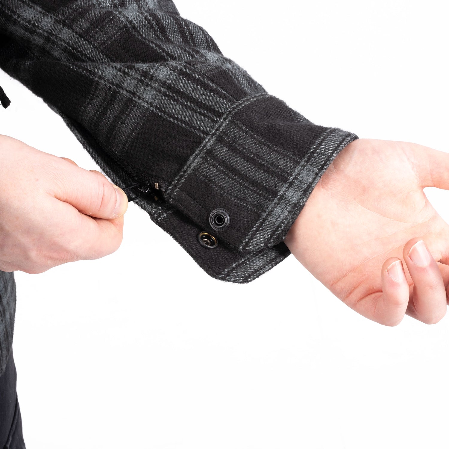 - Zipper & press stud cuff closure